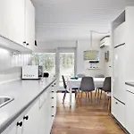 Een ingerichte keuken in 2727-Nexo-I-Klitterne-1 Villa is uitgerust met een waterkoker, een koelkast en een oven.